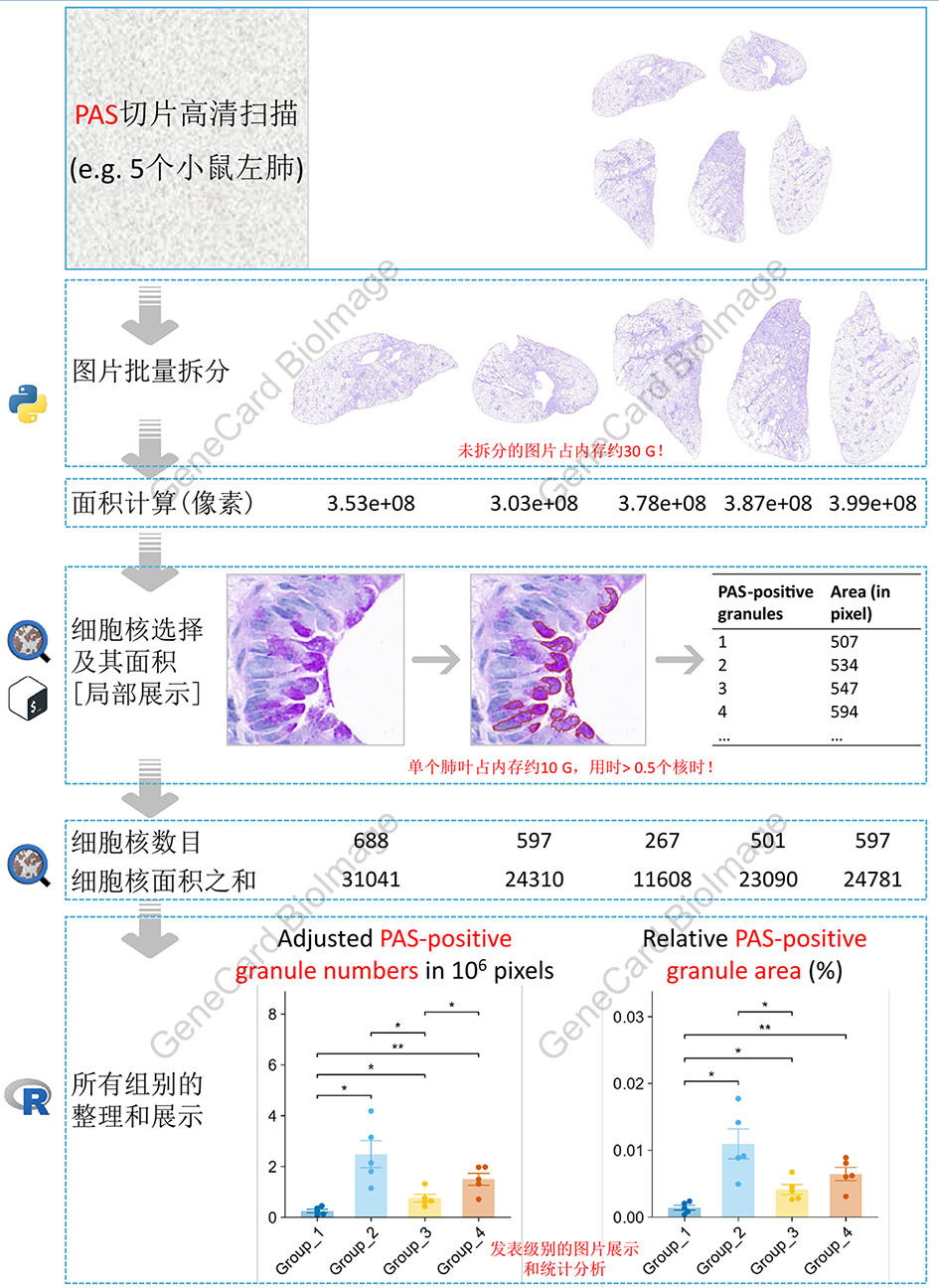 本流程通过计数PAS切片中的相对PAS阳性颗粒总数和相对PAS阳性颗粒总面积,以实现客观的PAS切片自动分析。