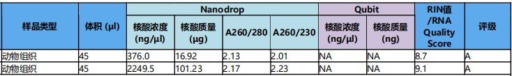 2. 使用RNAlater后,组织RNA评级为A😃👋