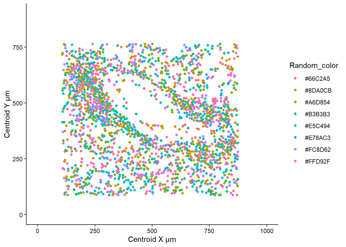 nuclei_unweighted <- ggplot(df, aes(x = `Centroid X µm`, y = `Centroid Y µm`)) +