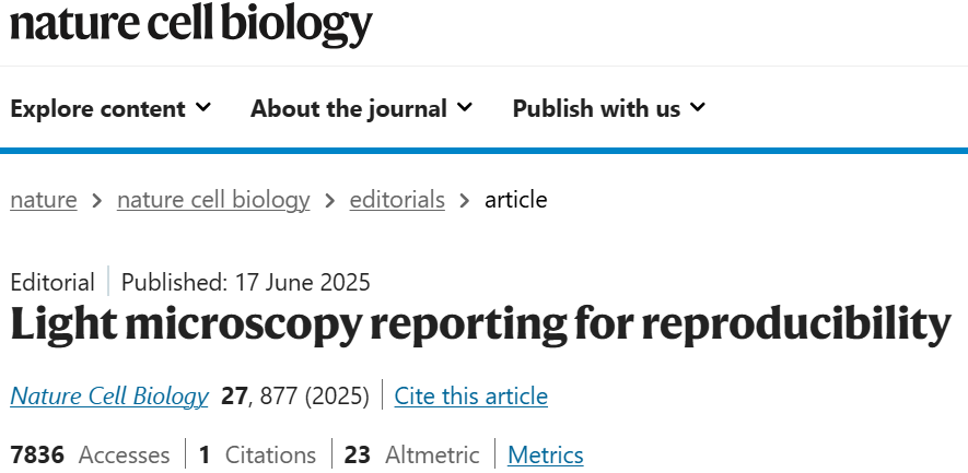 Editorial, Light microscopy reporting for reproducibility. Nature Cell Biology 27, 877–877 (2025).